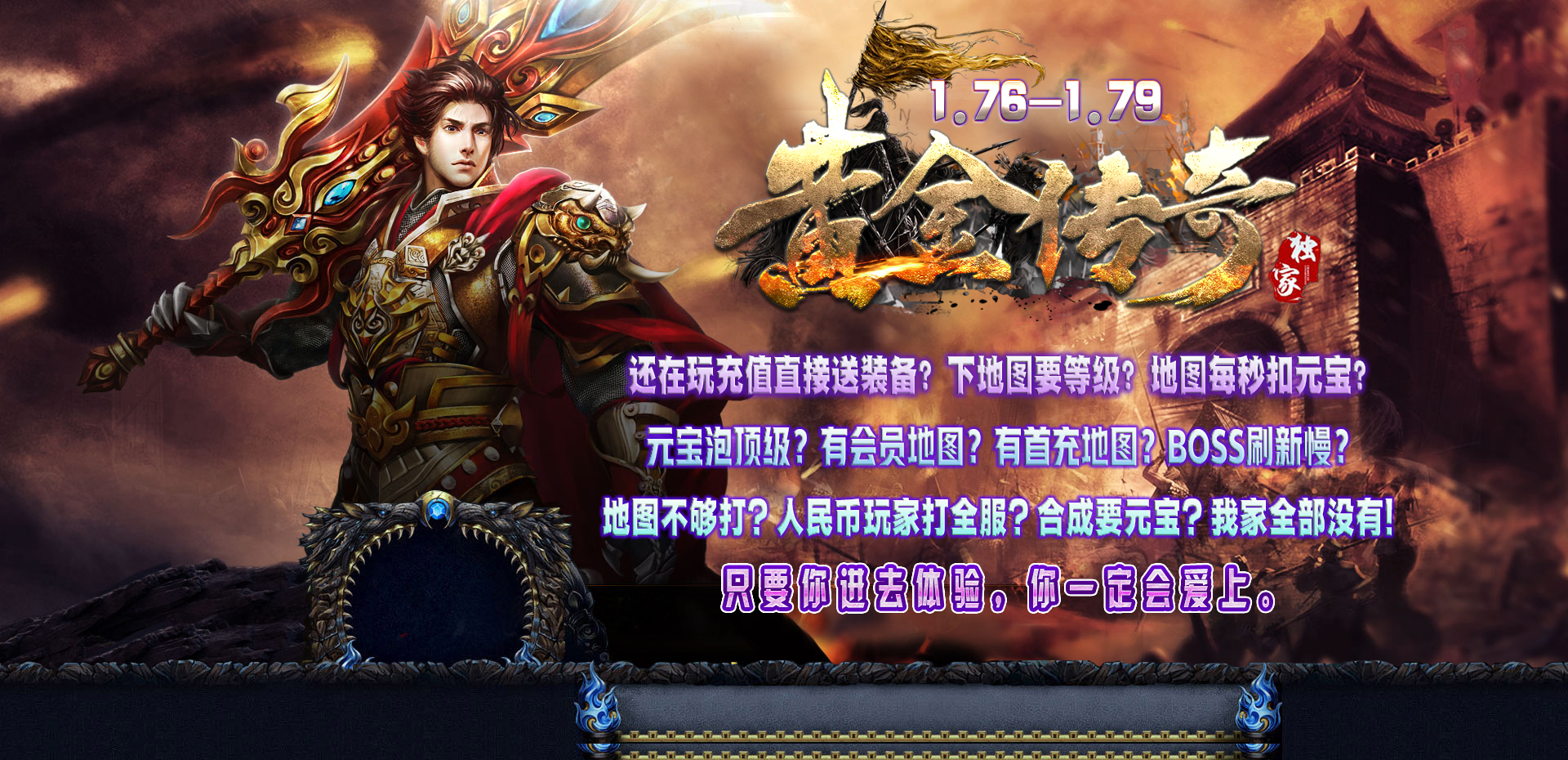 所有地图0等级进入,地图超多,怪物刷新快,元宝不能购买任何装备,没有无怪可打情况