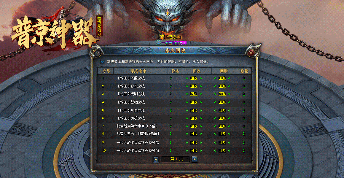 全网最良心的神器激情服 元宝靠打 装备小保值