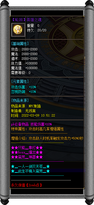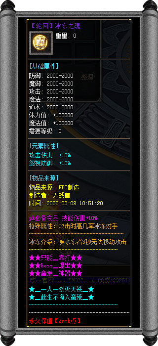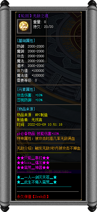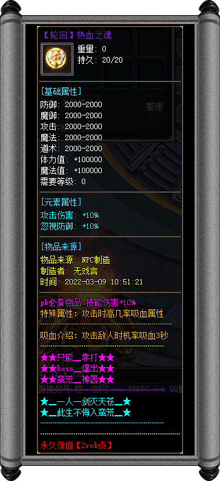 赞助(50米) 拥有:300%爆率 1.5倍攻击.鞭尸等 详情游戏内查询