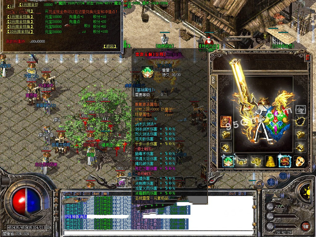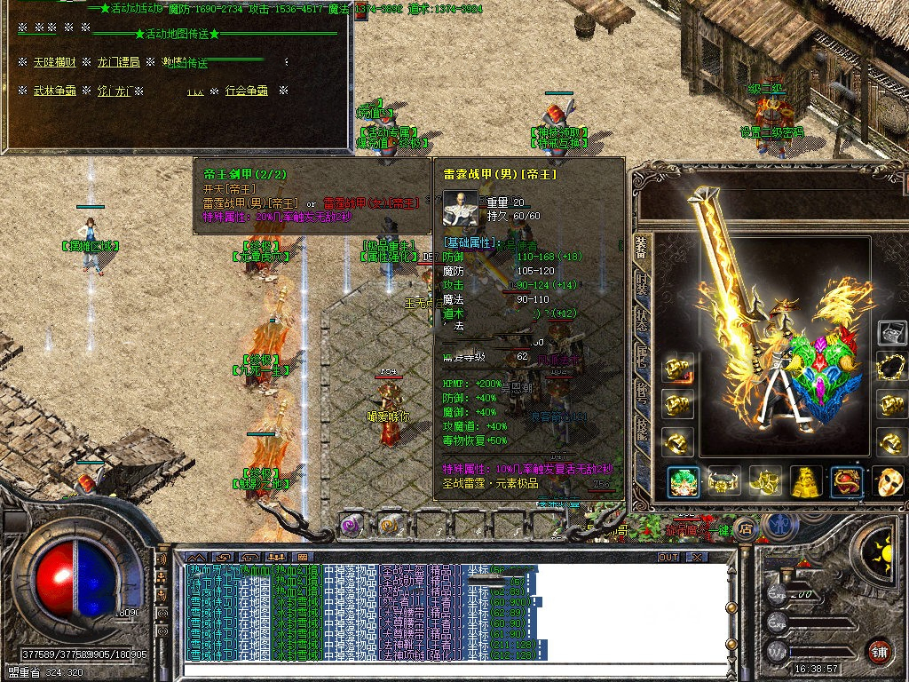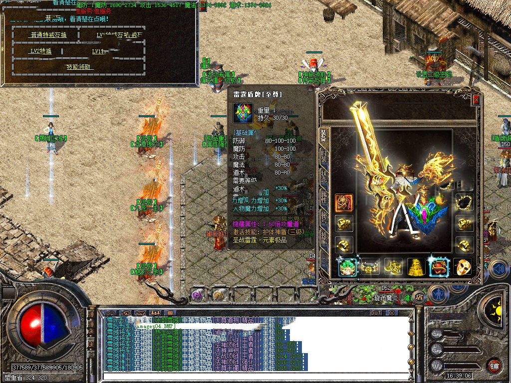 【系统】:为提高人物属性方便玩家打宝,特设置各种NPC,狂暴之力,转生服务,爵位捐献,天下第一,武林盟主等。