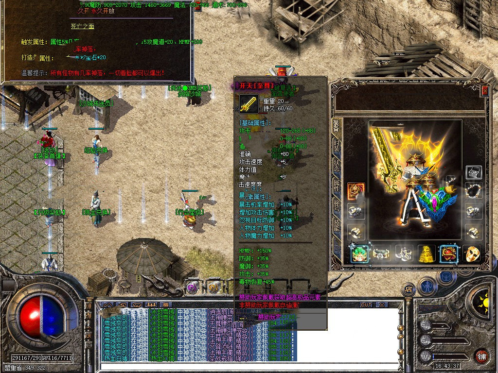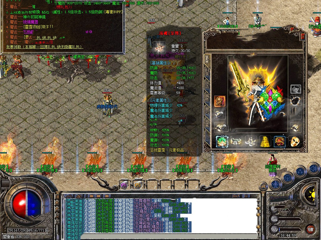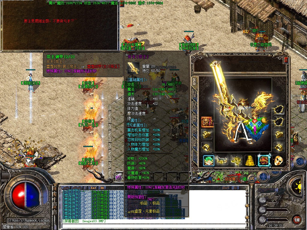 【系统】:各位玩家请注意,打到有加元素的装备千万不要丢弃,元素极为稀有,可在土城元素提取NPC提取出来!