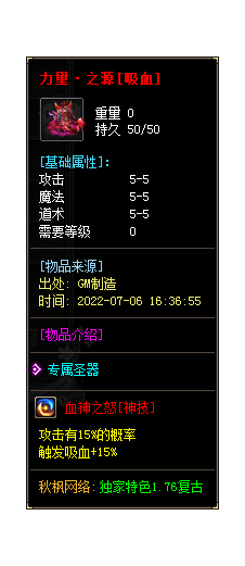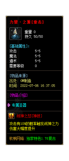 - Hot~【游戏介绍】本服拥有多种神器专属技能,专属怪物爆出,一切靠打!
