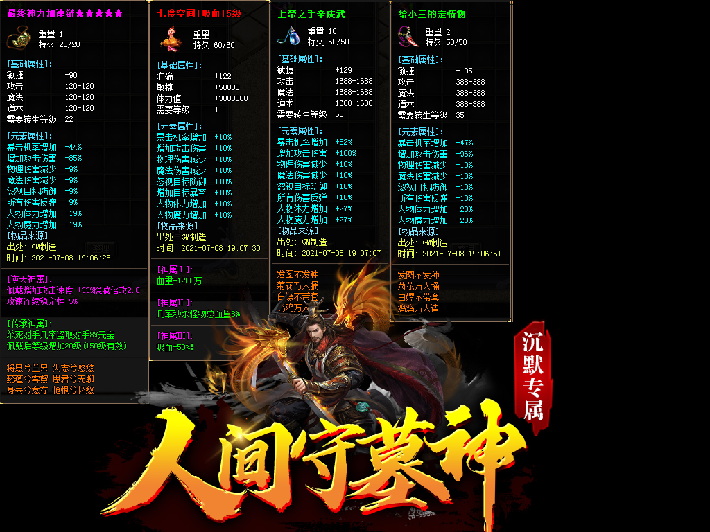 注:不要说装备爆率低,本服装备爆率适中,适合长期玩,如果你想玩1 2天,劝你不要浪费时间