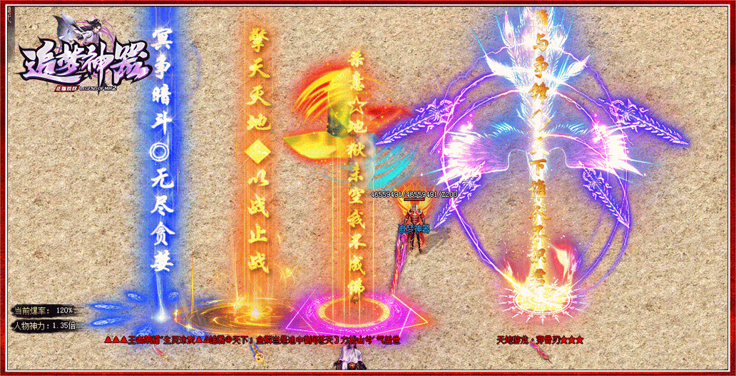 - 【游戏介绍】:本服每天准时开放两个个新区,第二天合区攻沙,攻沙奖励丰厚!