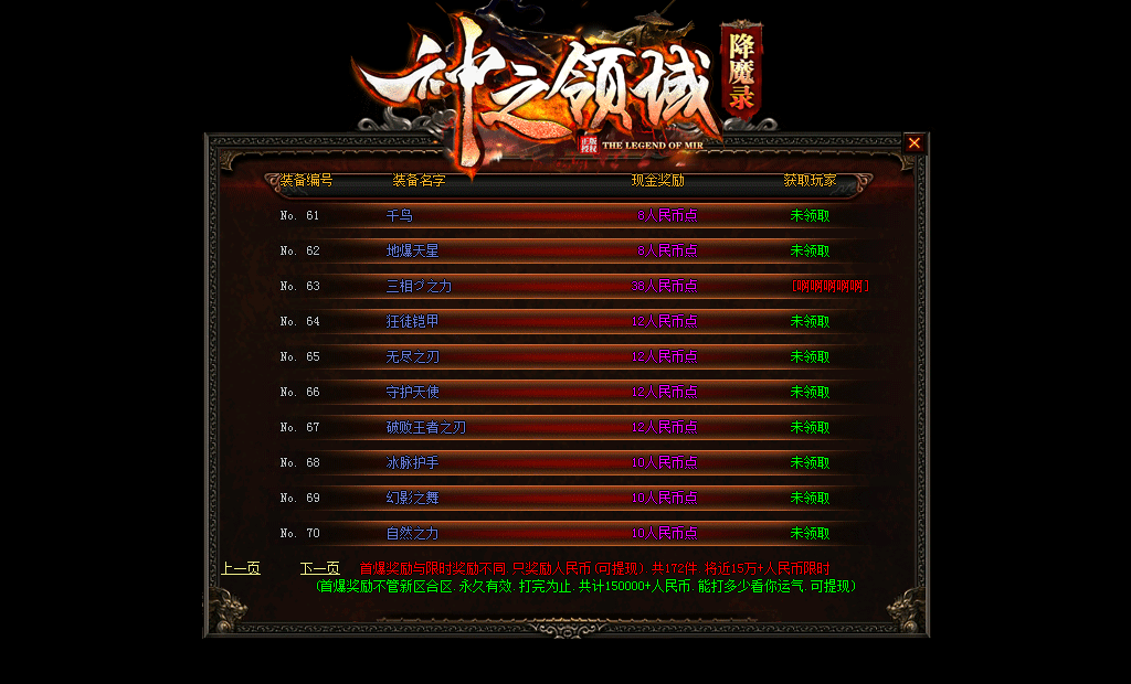 降魔领域团队倾情制作,20元满赞助,狂暴累计到沙城奖励,无任何隐藏消费。