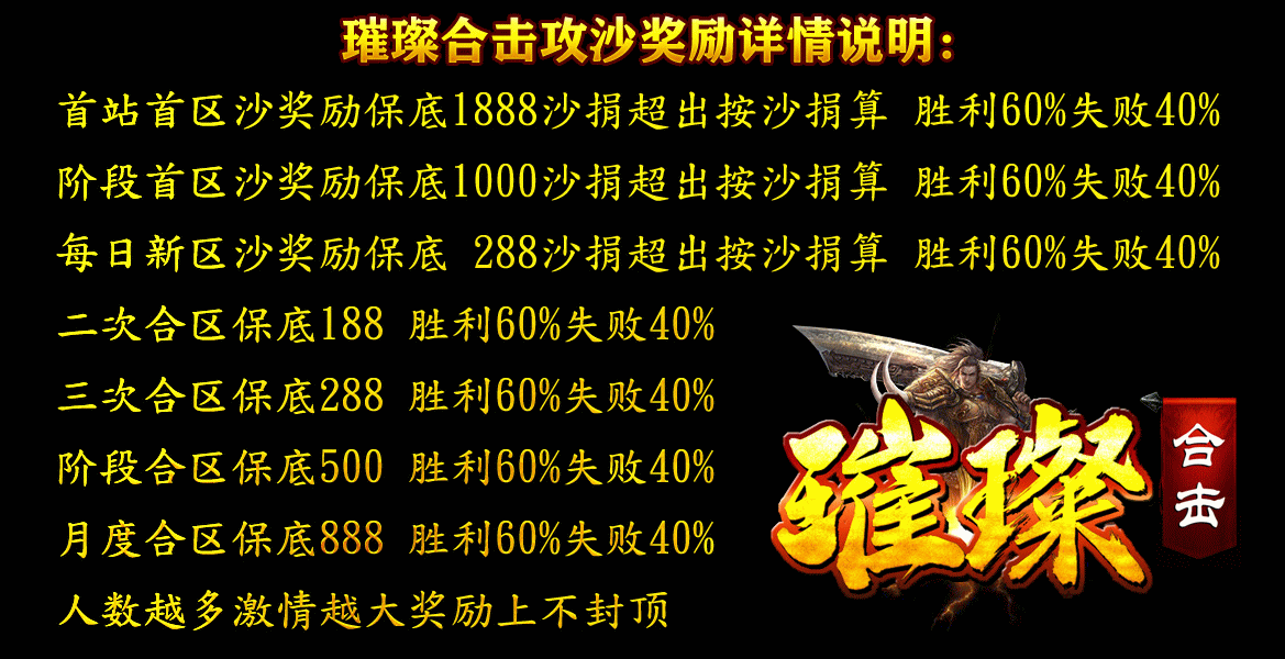 :本服终极保底回收 元宝好打 版本耐玩 活动超多 爆率合爆率 誓做全网最好玩版本.