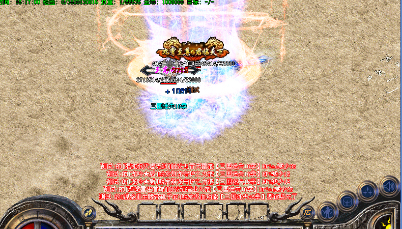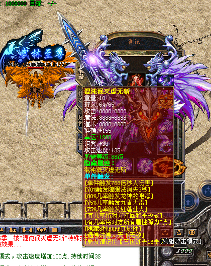 更新介绍① >>更新一把终极武器混沌泯灭虚无斩788倍神力,杀人越货必备神器,8种超级绚丽BUFF让PK激情无限,更多精彩等你上服体验