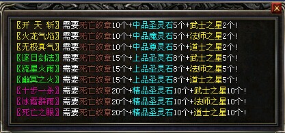死亡纹章可在尸王身上爆出,各职业之星及灵珠在游戏中5000以上血小怪爆出!