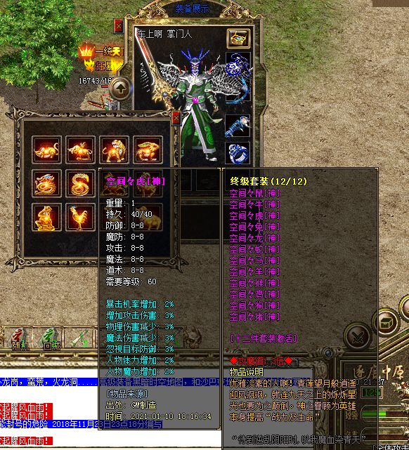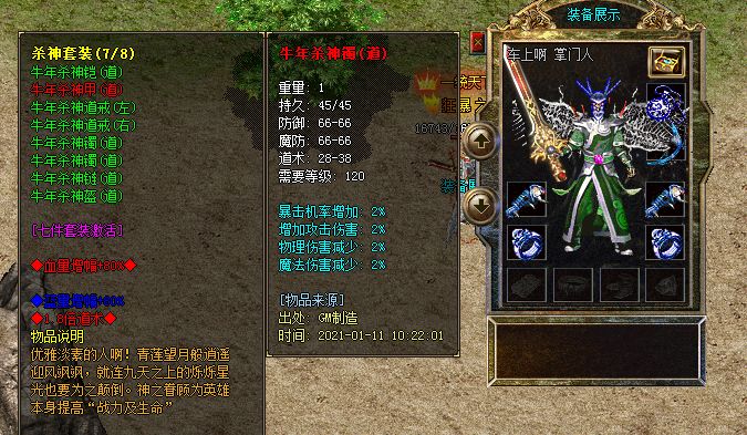 大哥装备,沉默一套,包含诅咒亡,战神帝,凤凰飞,守护神,傀儡隐,天地防,精灵翔