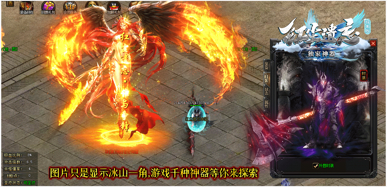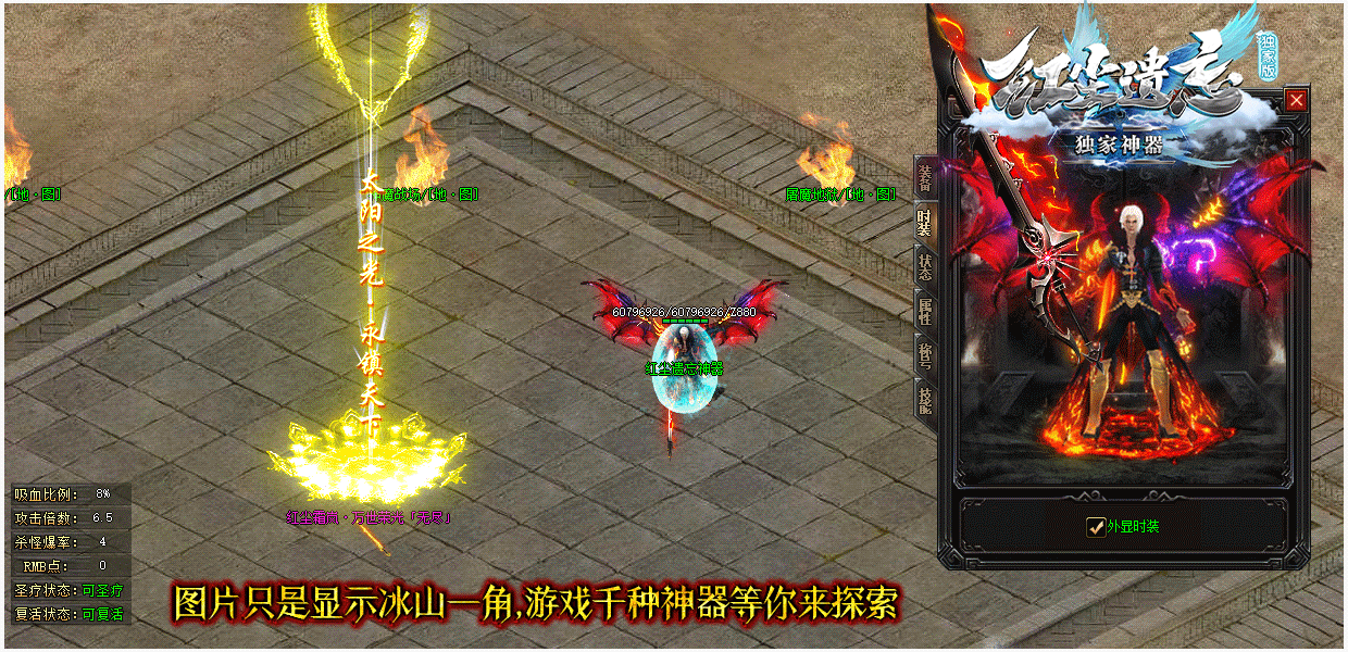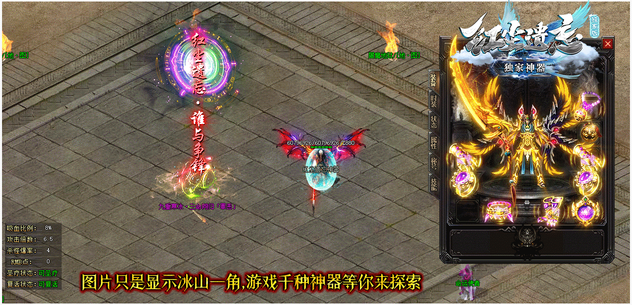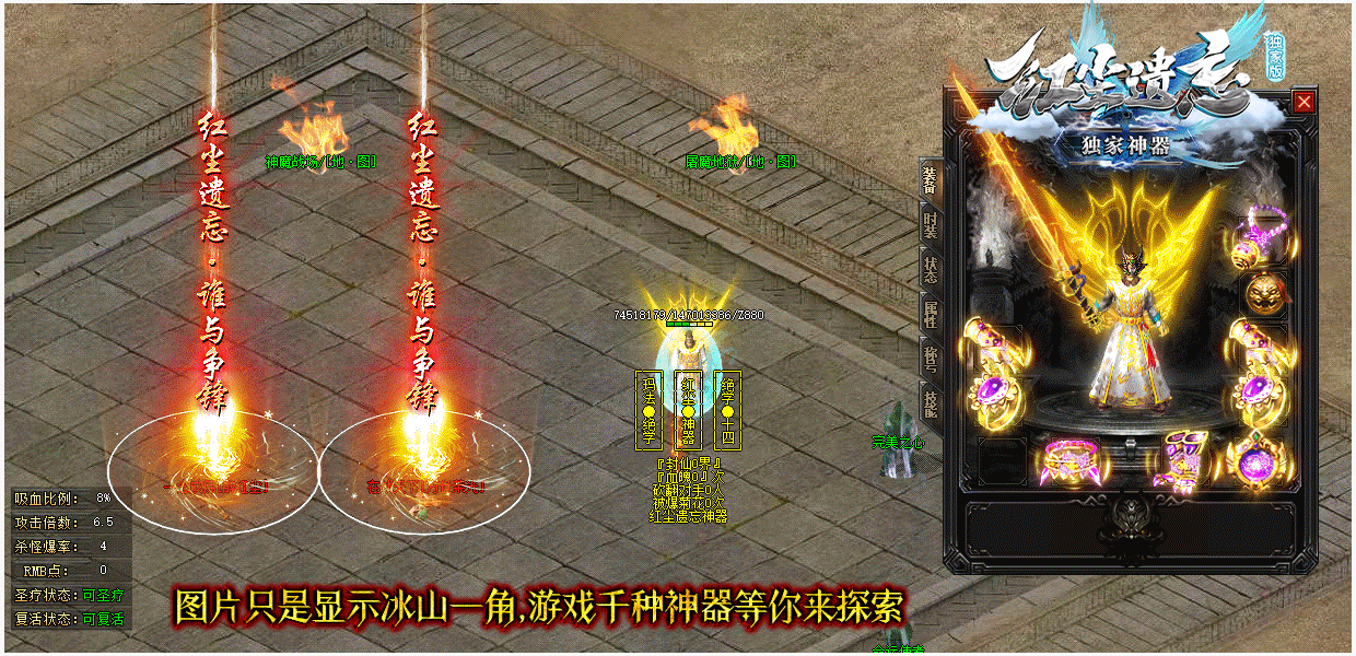 ★红尘遗忘★:上线送爆率-送切割-送充值-自动挂机-自动回收-一切靠打,无合成,看脸时代,你和土豪的差距只是【时间】