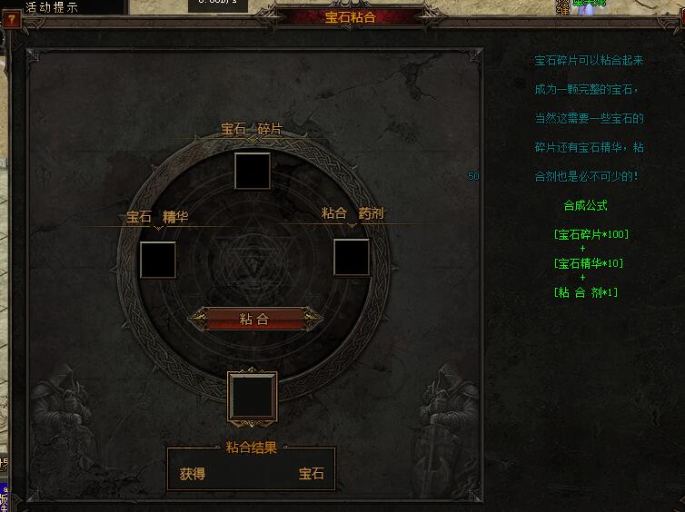 一、宝石右键镶嵌获得技能,然后2个相同的宝石镶嵌在装备上,会使技能升级!