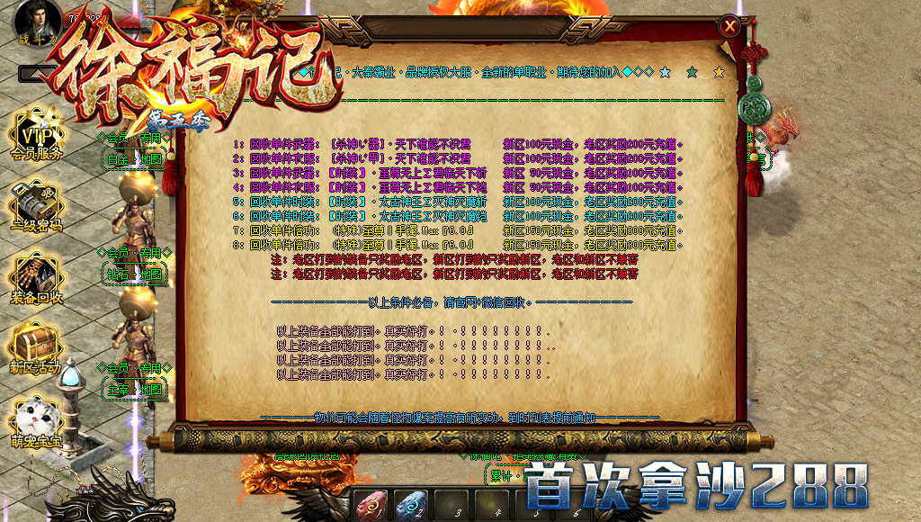 【新区活动】每日活动不停,各种福利送送送,装备狂爆,元宝好打,散人终极!