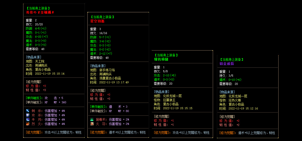 装备阶层排序:神话-星空-裁天-传奇-传说。所有装备均可爆出!