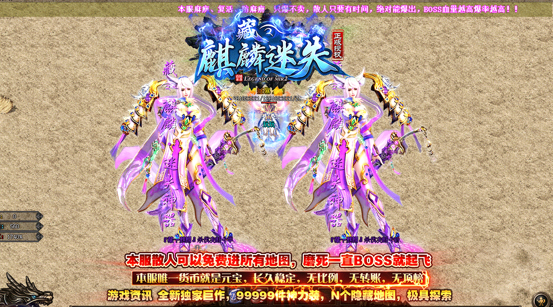 隐藏介绍:本服隐藏地图超多,不再单调玩法,是房间就刷终极BOSS,隐藏地图刷,爆率卷轴怪物(打死一只,进爆率地图直接起飞