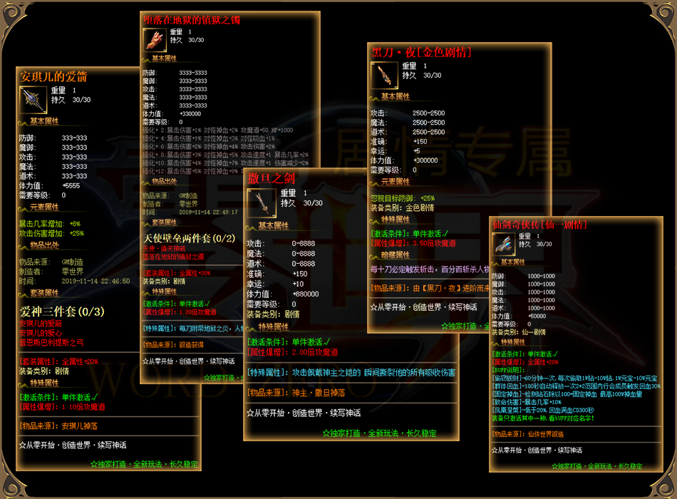 本服长久耐玩!非市面一般版本!装备多样化,专属装备众多,各位剧情任务云集。