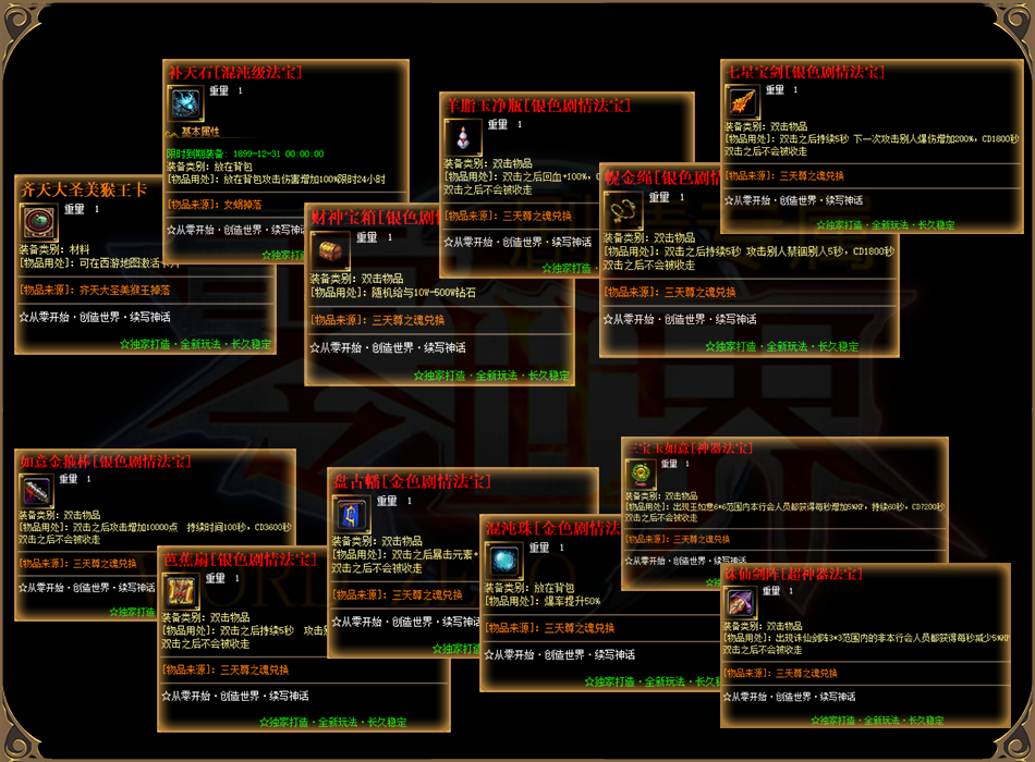 限时奖励上千件,单件永久回收,账号自助转区系统,充值卡跨区买卖,装备绝对保值。