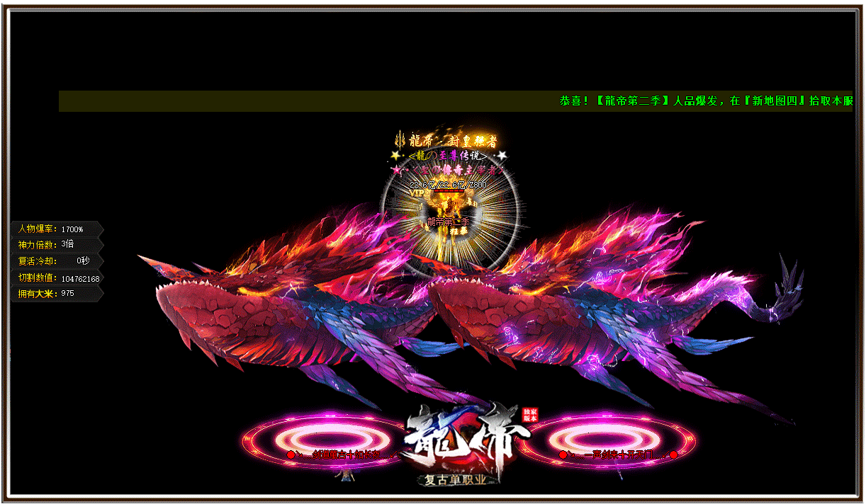 • 第②统战大区【龍帝复古单职业】 于2024-06-7 19点 准时火爆公测 多机负载 全国不卡 人满为患 散人乐园