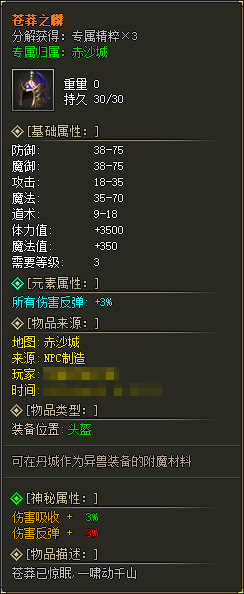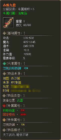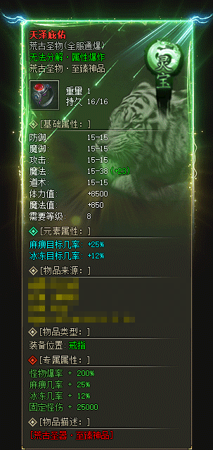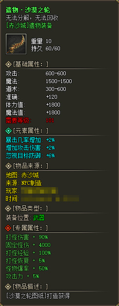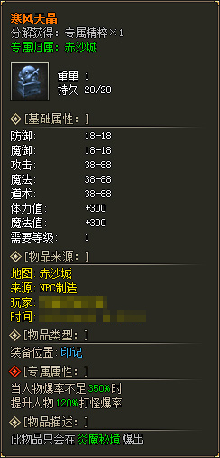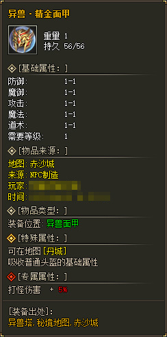 地图赤沙城区域[赤沙石墓]的珍奇异兽,专属技能[霜雨]附带冰冻特性,有几率冰冻玩家或者怪物