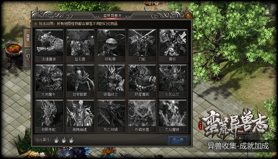 地图流坡岛区域[死亡火山]的珍奇异兽,专属技能[焰流]可以强化玩家烈火剑法的威力