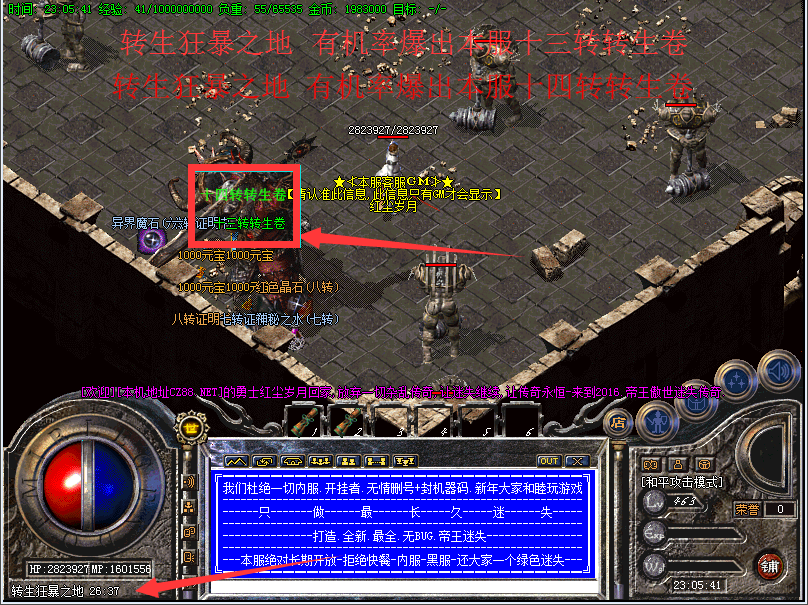 【游戏介绍④】:后期多个转生地图,专为散人打造。狂暴全服所有装备,拼的就是人品.拼的就是运气·<