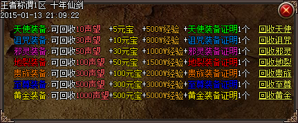 装备可以回收成游戏内发展所需的元宝 还可以获得精彩 声望 装备证明等