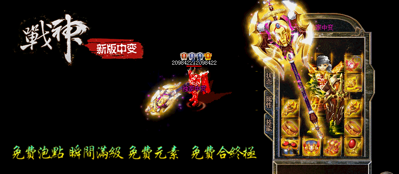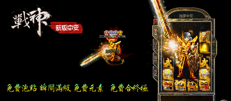 游戏介绍④ >> 免费转生系统,可送于超多属性点!免费领取倚天劈地、武力盾、护体神盾,玩法多姿多彩! |