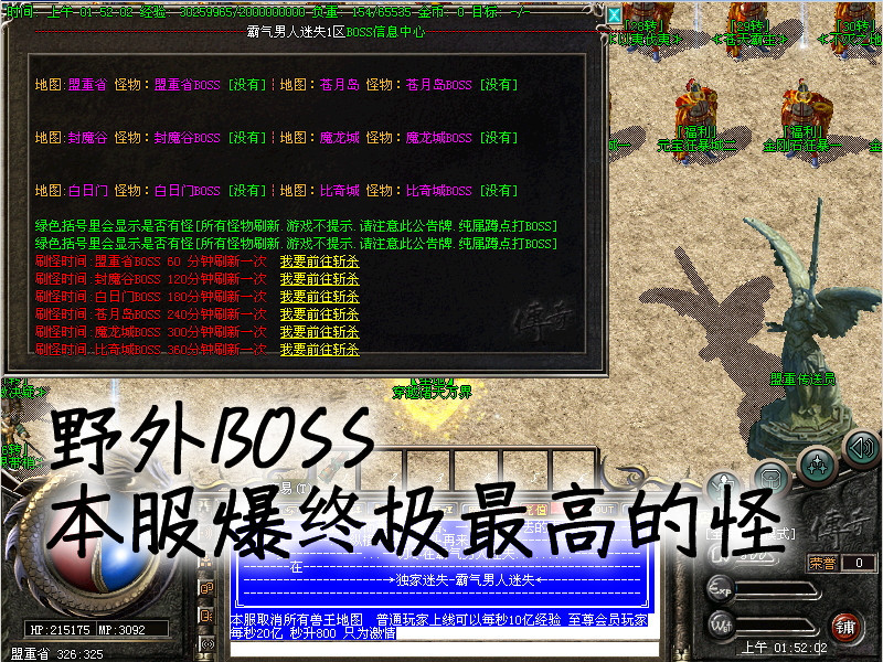 更有超级BOOS,超高爆率,全部刷新在散人地图.