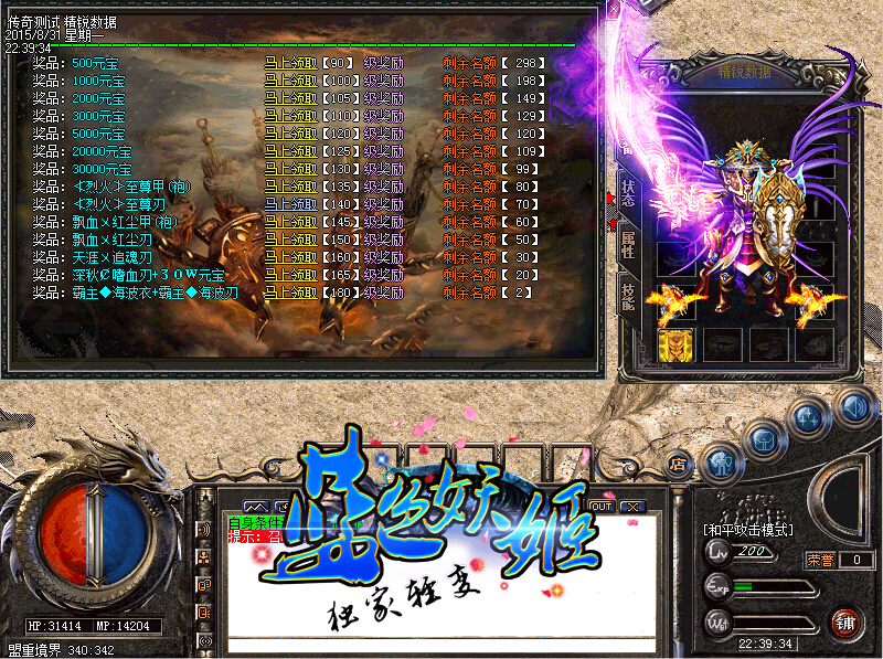 特色功能:【游戏需知】本服封顶180级,级别好升,装备爆率非常高,散人免费砍猪 升级回收装备轻松满级。