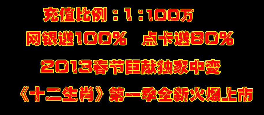 【充值介绍】 元宝比例 1:100W 点卡赠送80% 网银赠送100%