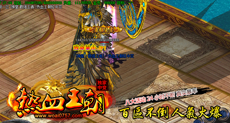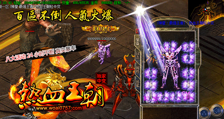 版本介绍:本服新加八大活动 变态暴率 24小时不断推出新活动 欢迎广大中变骨灰玩家进服体验!