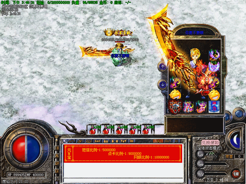 【元宝比例】:短信:1:500W 点卡:1:1000w 网银:1:1000w,无任何额外比例