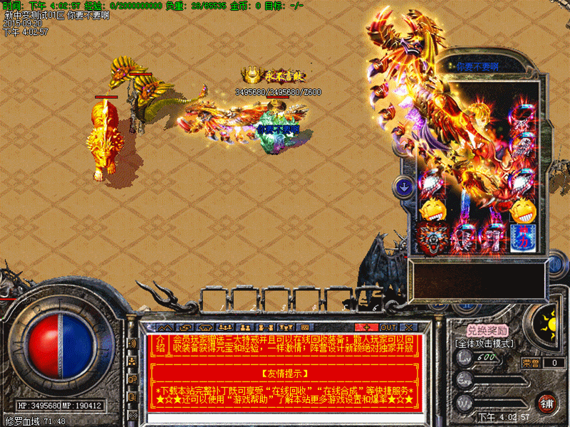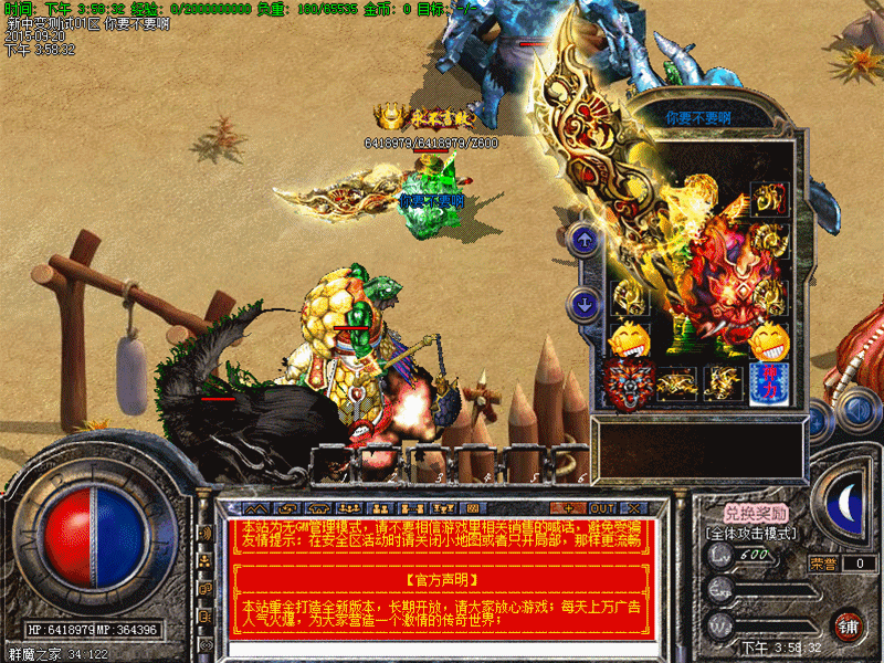 【温馨提示】:本服绝对无GM管理,游戏中自称GM,喊话带QQ,卖元宝的一律是骗子,被骗后果自负!