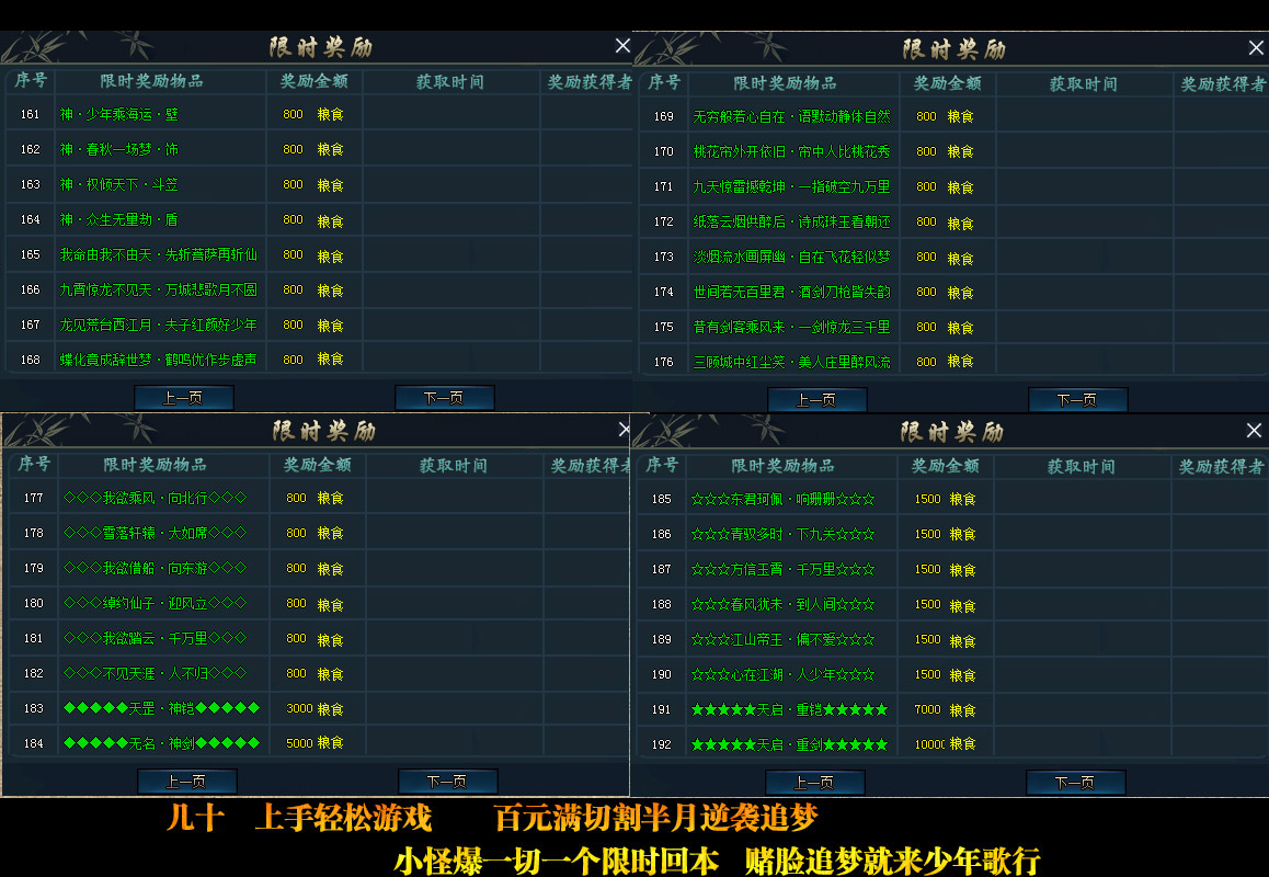 少年歌行追梦篇·区区10W粮食限时奖励部分展示