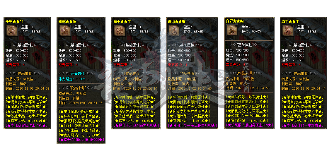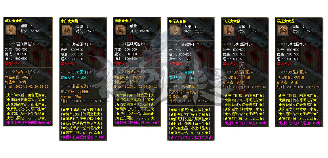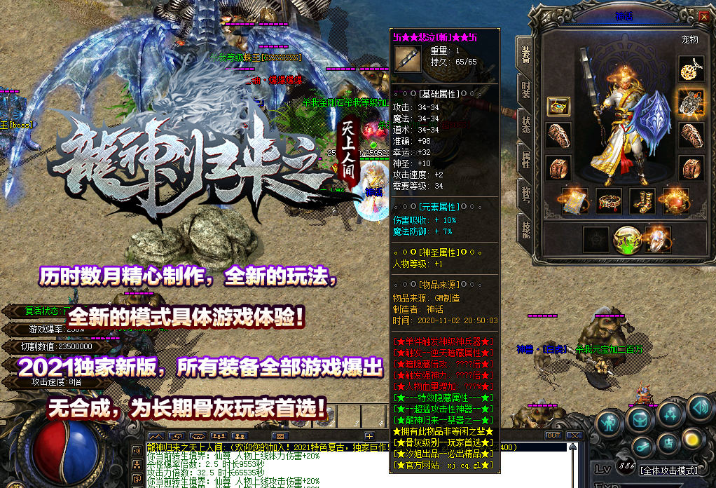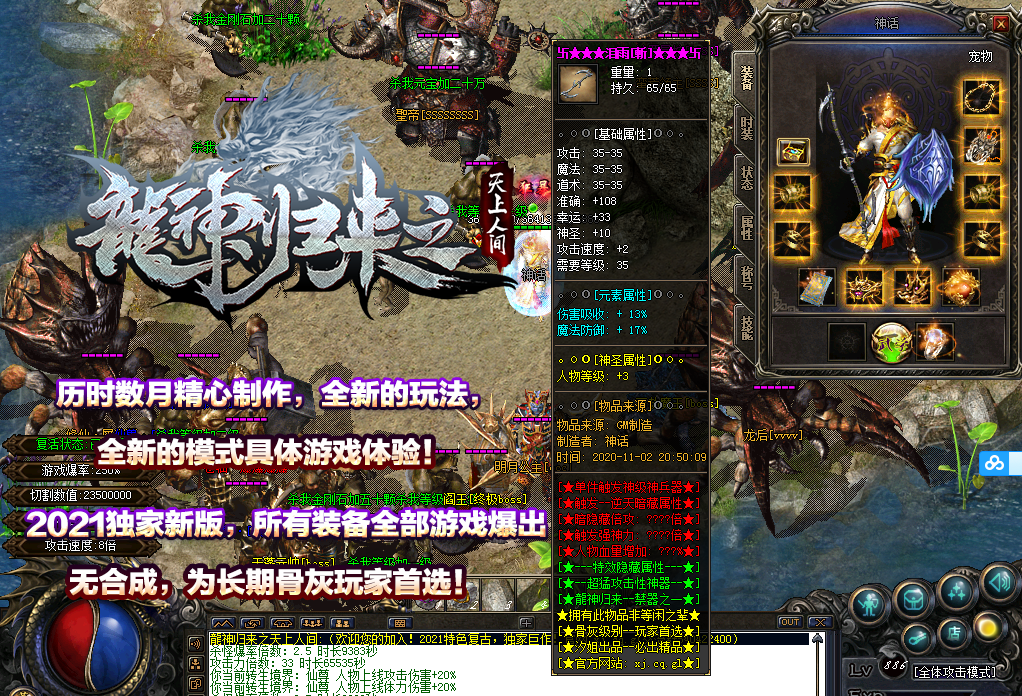 龍神归来-套装属性(鼠标放到图标上即可看到)