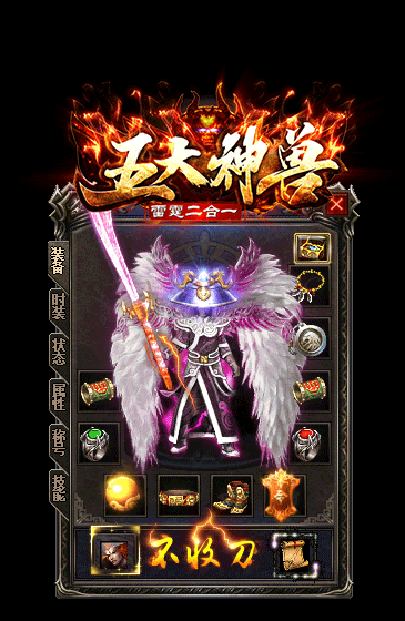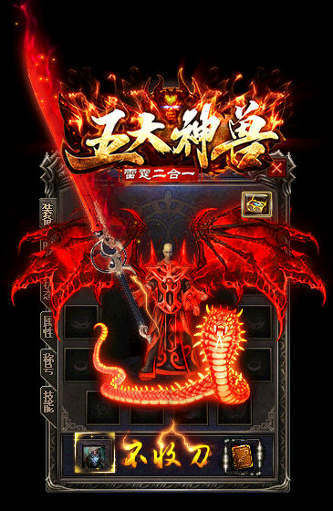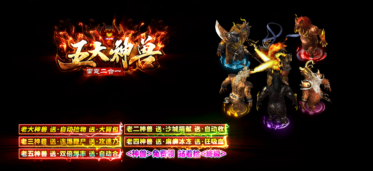 老大神兽 送·自动捡物 老二神兽 送·沙城捐献 老三神兽 送·连爆鞭尸 老四神兽 送·麻痹冰冻 老五神兽 送·双倍爆率