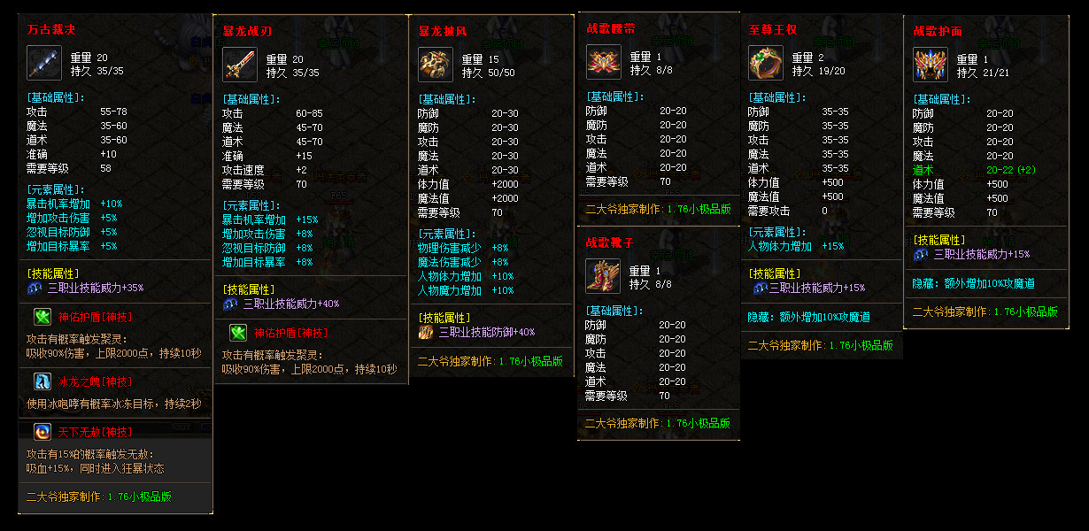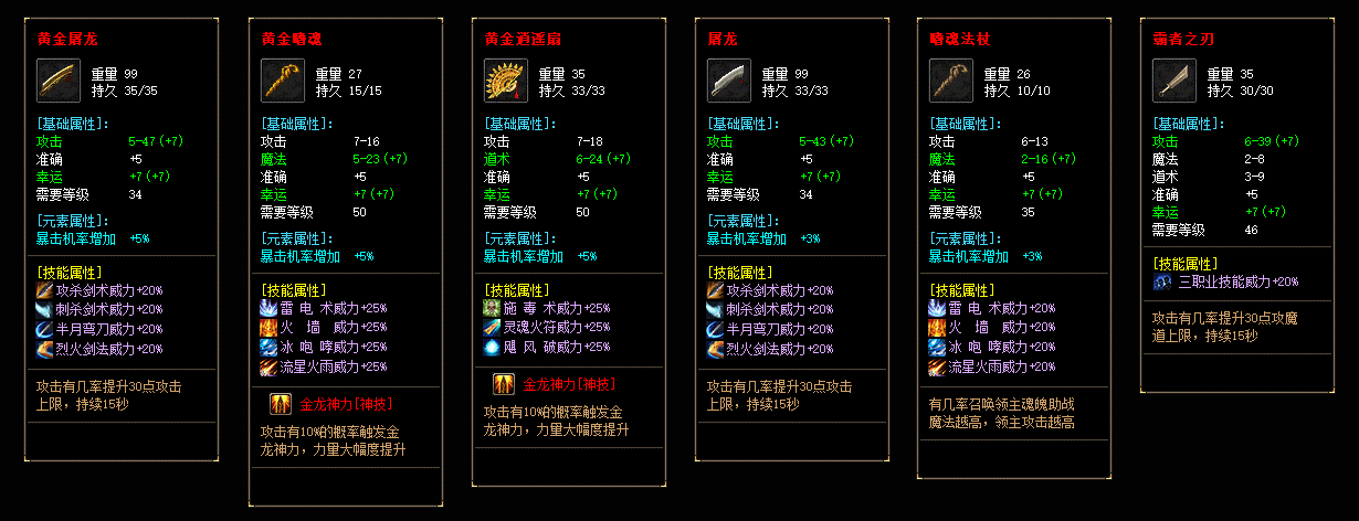 - 【装备爆率】六大神兵:本服所有80000血以上BOSS都会爆出黄金系列,无赦系列武器,打到就是赚到