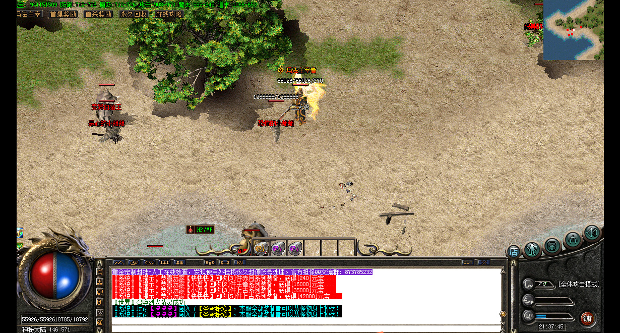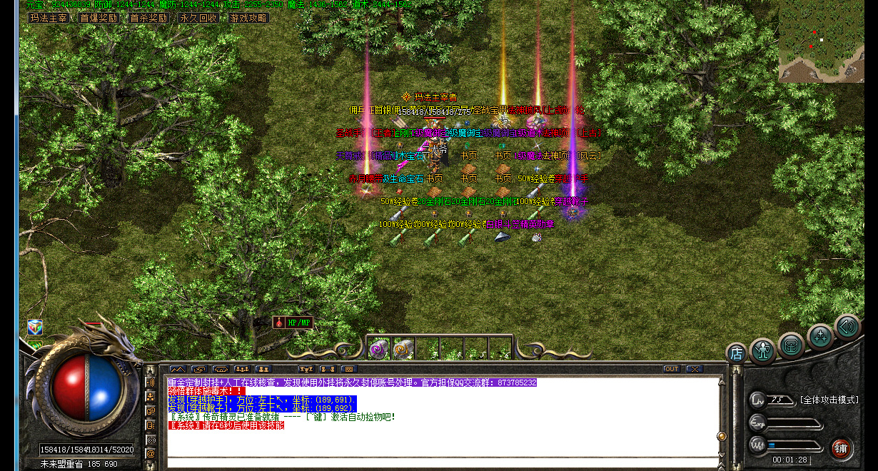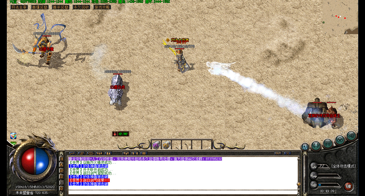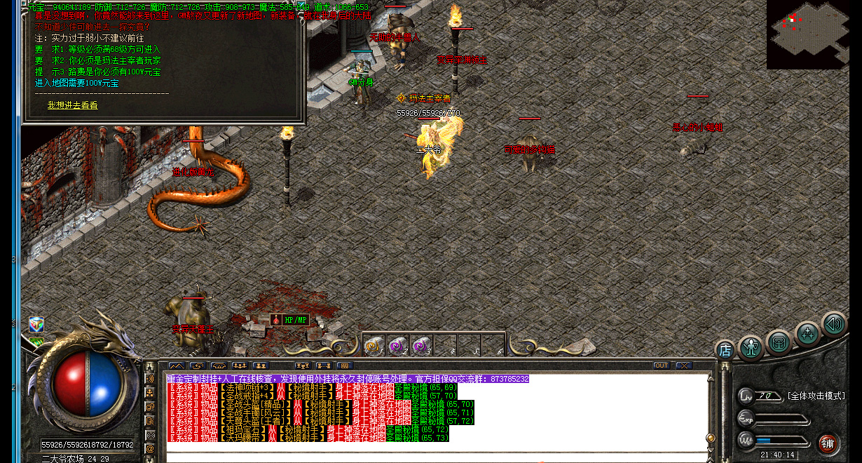 - 【装备爆率】屠龙系列:本服所有10000血以上怪物都会爆出屠龙、嗜魂法杖等高级武器,打到就是赚到