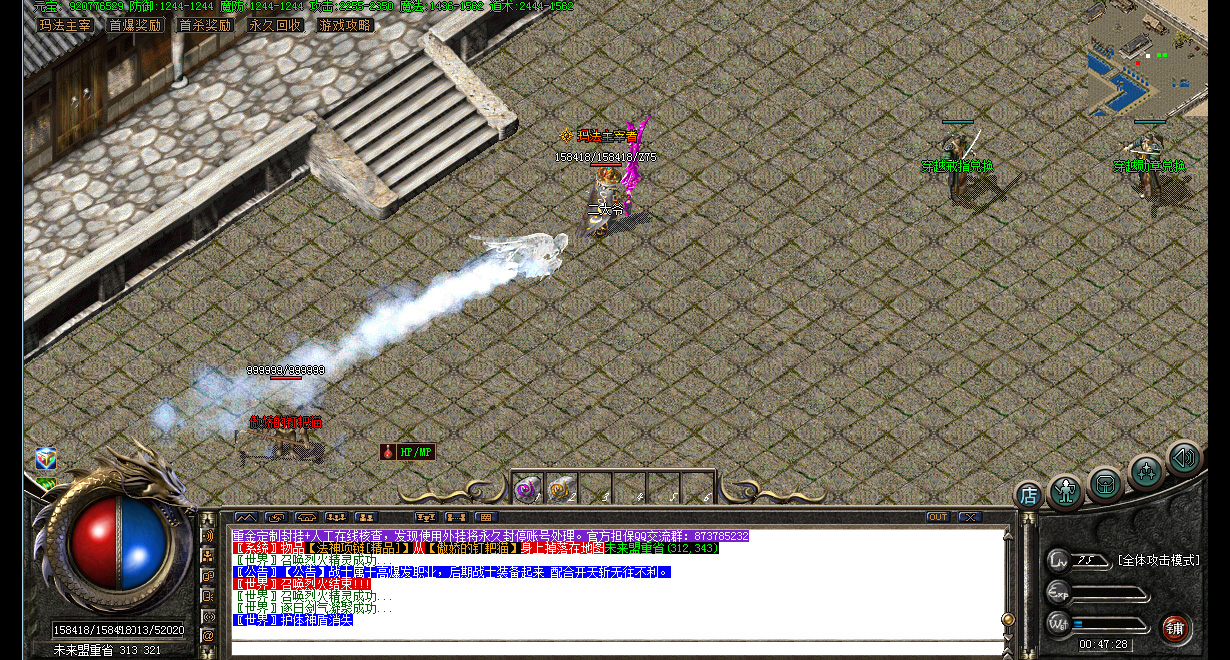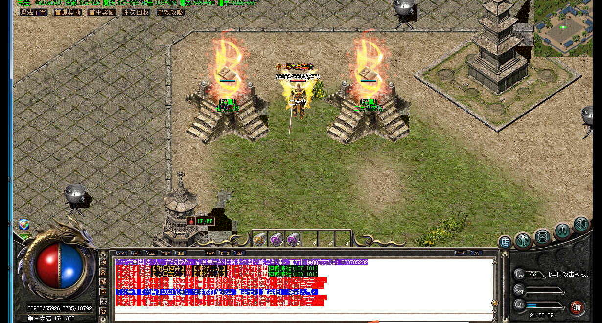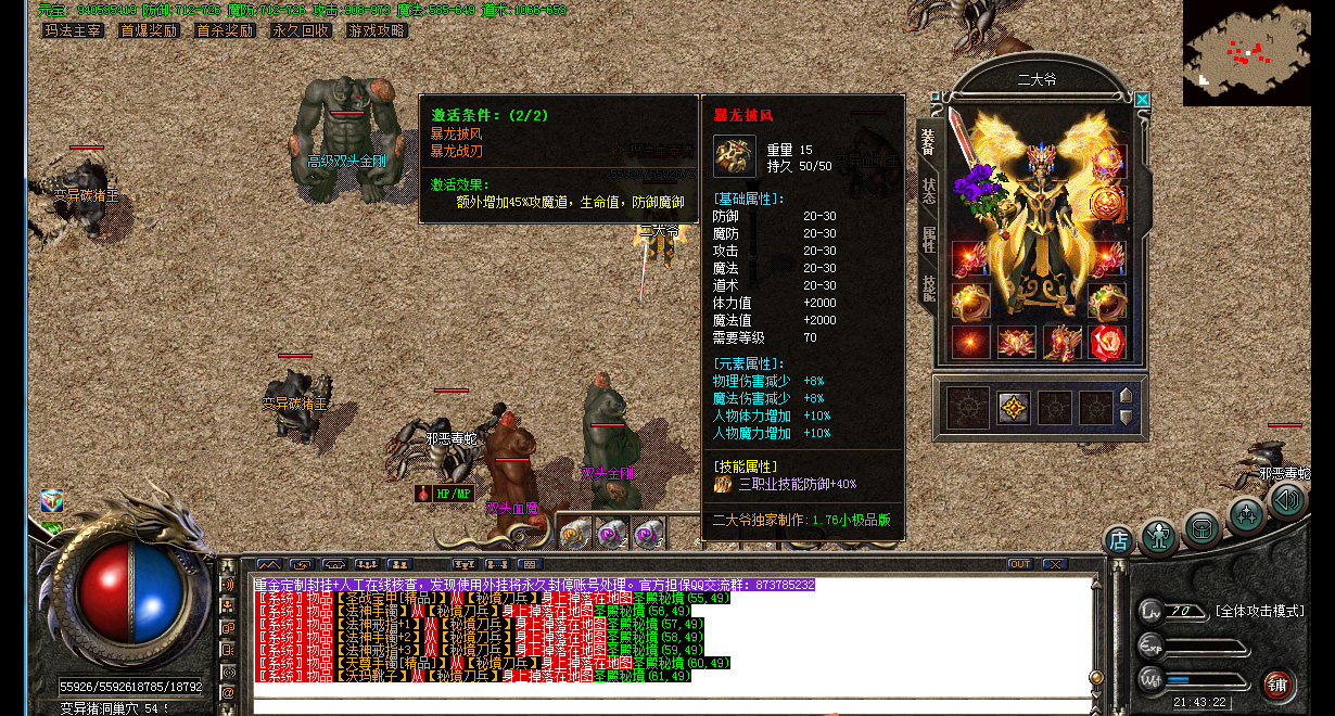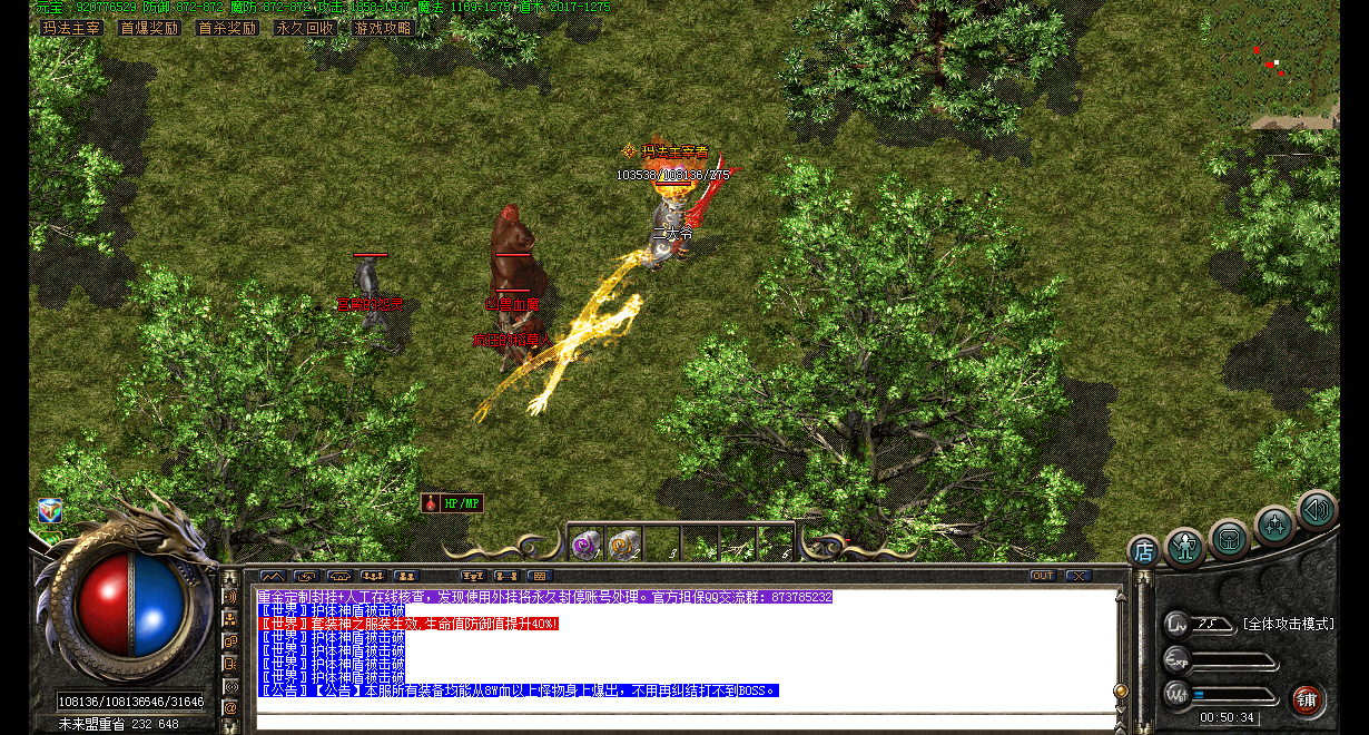 - 【装备爆率】屠龙系列:本服所有10000血以上怪物都会爆出屠龙、嗜魂法杖等高级武器,打到就是赚到