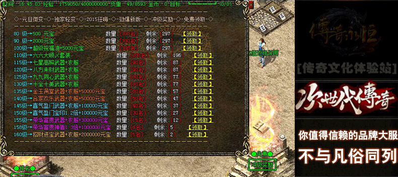 游戏介绍① >> 本服每天5个区,海量广告宣传,保证人气火暴!第2天拿沙后再合区