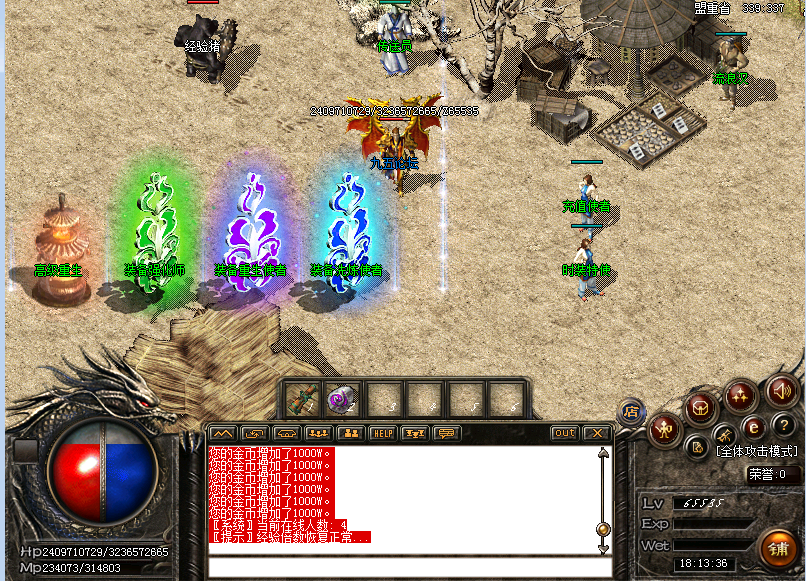 中后期在地狱之塔升级打宝,而且闯地狱之塔有几率得到隐匿之剑,召唤之剑,急速之剑,天龙神剑,特戒(本F无麻痹,护身两种特戒)等神器。