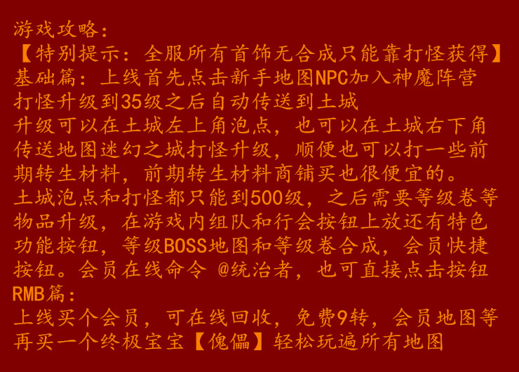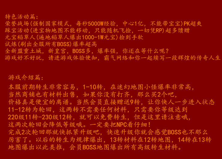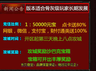 开区介绍:本服每天新区开放,合理合区,封杀。网站下方还有更多游戏攻略和介绍