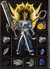 玄天②,光芒道袍⑥,光芒头盔⑥,光芒项链⑥,光芒护腕⑥一对,光芒腰带⑥,光芒道靴⑥,光芒勋章⑥,道仙宝石⑥,光芒道戒⑥一对,复活戒指⑥ |