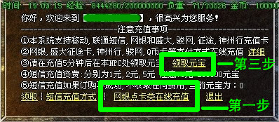 第三步:进入游戏点击NPC【短信充值使者】或【元宝充值使者】领取元宝。 很简单吧-_-!