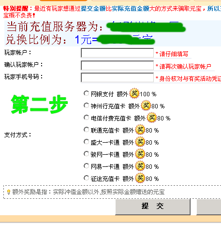 第二步:点击游戏脚本中的【网银点卡类在线充值】,打开后就是你所在的分区链接了,上面显示当前充值服务器,无需担心选错分区……