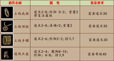 土域: 道士的御用套装,土域戒指具有复活属性,所以土域戒指不仅是道士会佩戴,战士也需要。