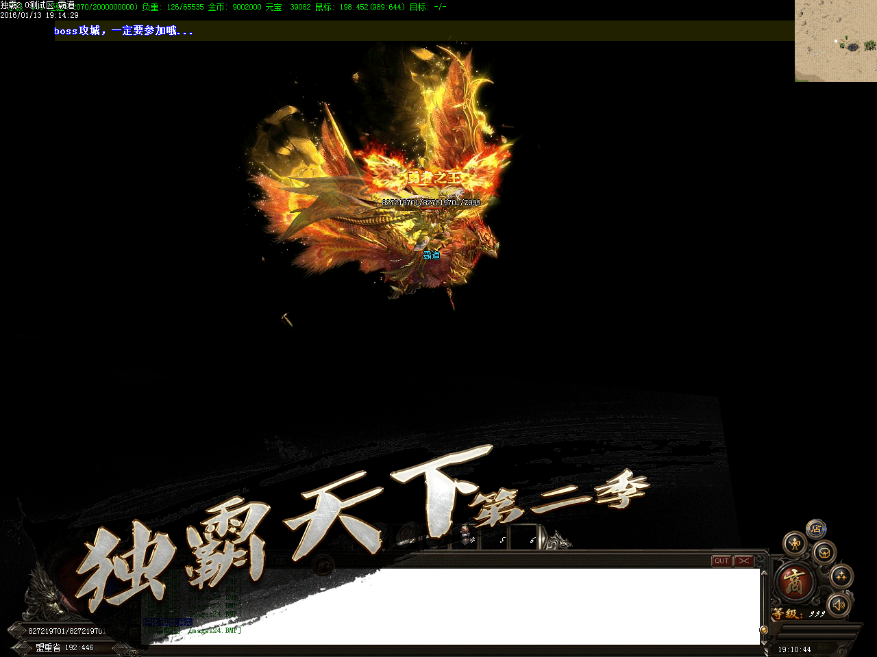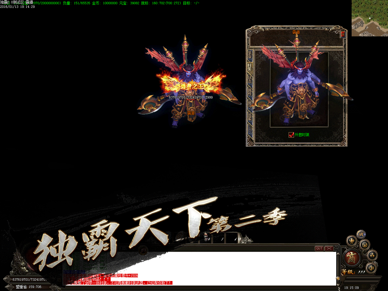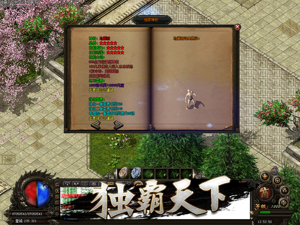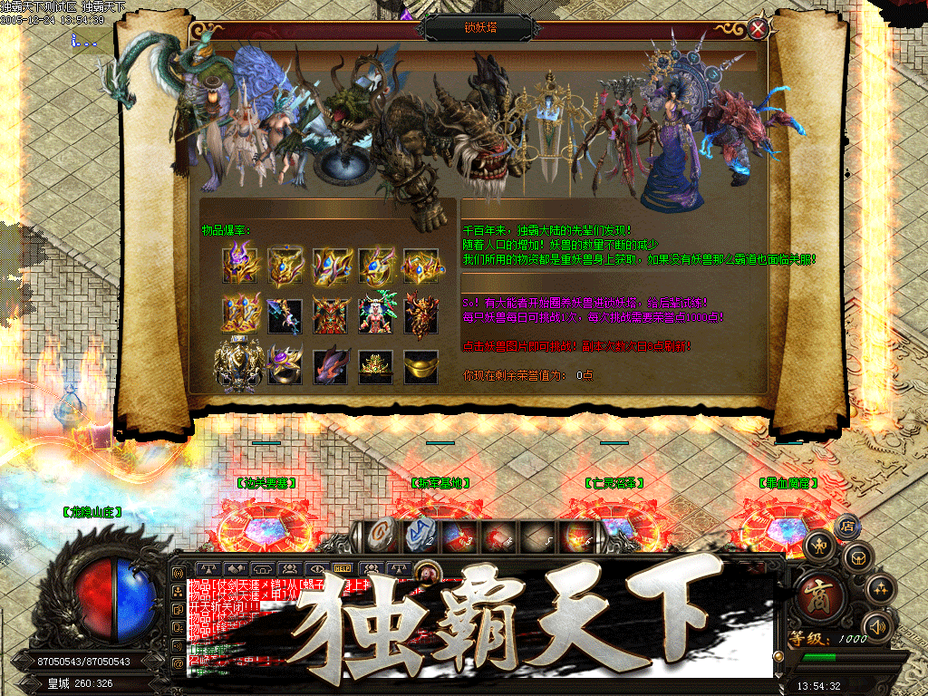 [独霸天下正式版]之霸道无双 更新介绍以及玩法修改: 二,添加直接强化道具,修改强化属性,整体强化可获得更好的属性加成。尽量让玩家能简单快乐的游戏! 三,游戏整体布局全部修改,完全推翻第一季玩法模式!这不是一句简单的话。游戏的变化希望你们进入游戏了解 四,修复已知所有BUG,与不合理的地方! 再次声明这不是简单的更新!