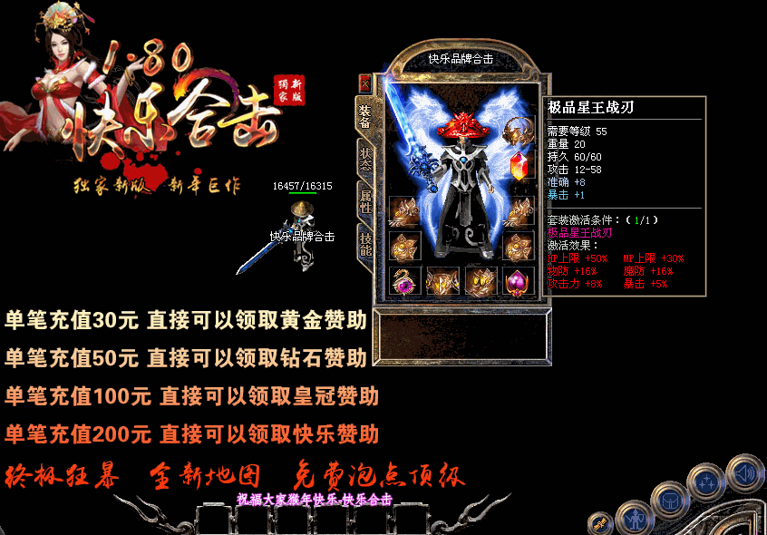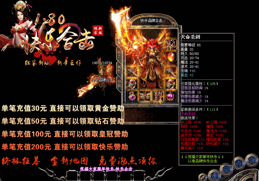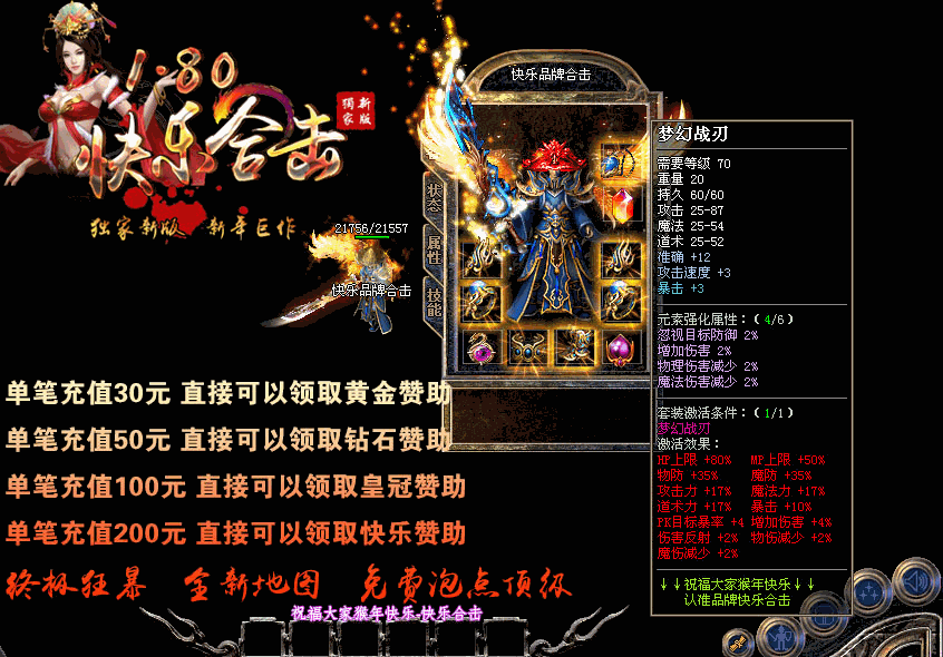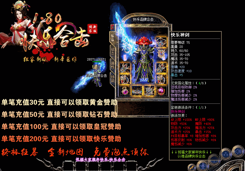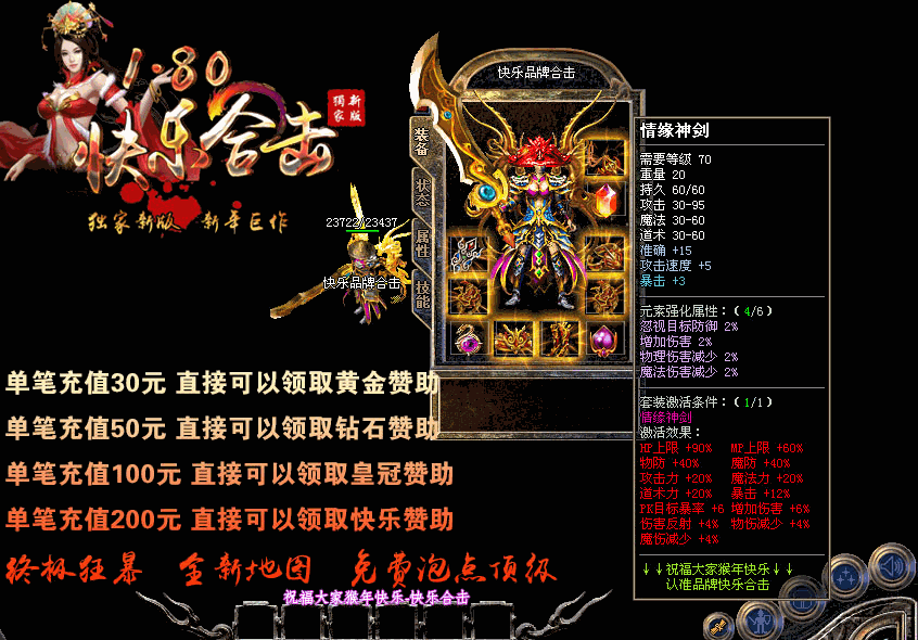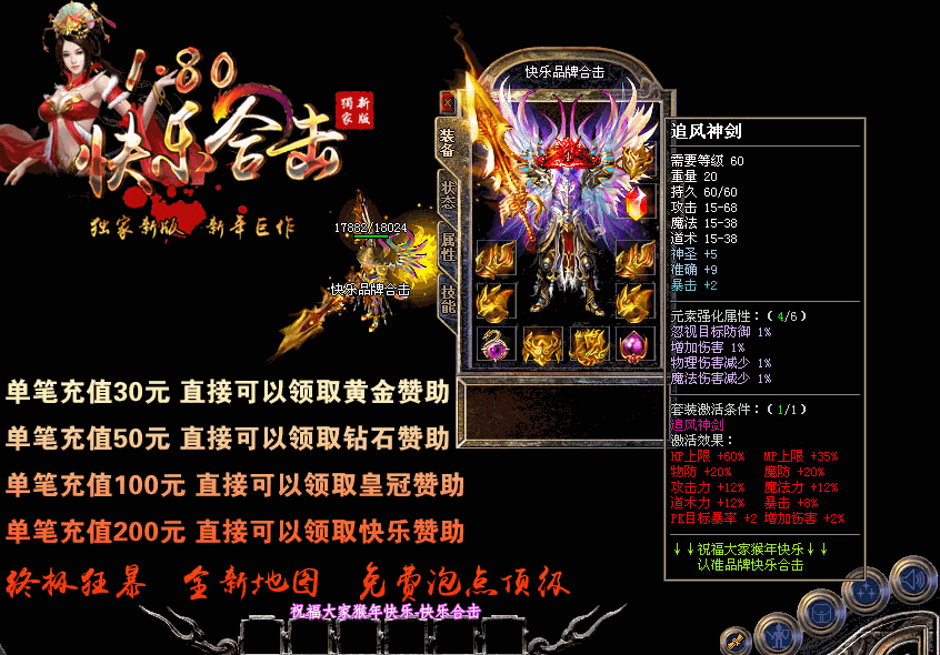 【游戏介绍】:独家1.80快乐合击升级版本,游戏乐趣更多,适合散人发展