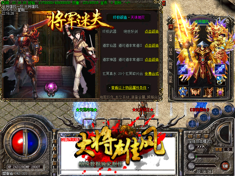 2015最新大将雄风迷失靓装,终极狂爆,满级免费,人气爆棚,草根消费 |
