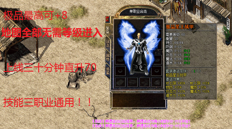 技能获得: | 本服为单职业合击.所有一万血以上的怪物都爆技能书.噬血术.流星火雨.火墙.等犀利技能!!!! |