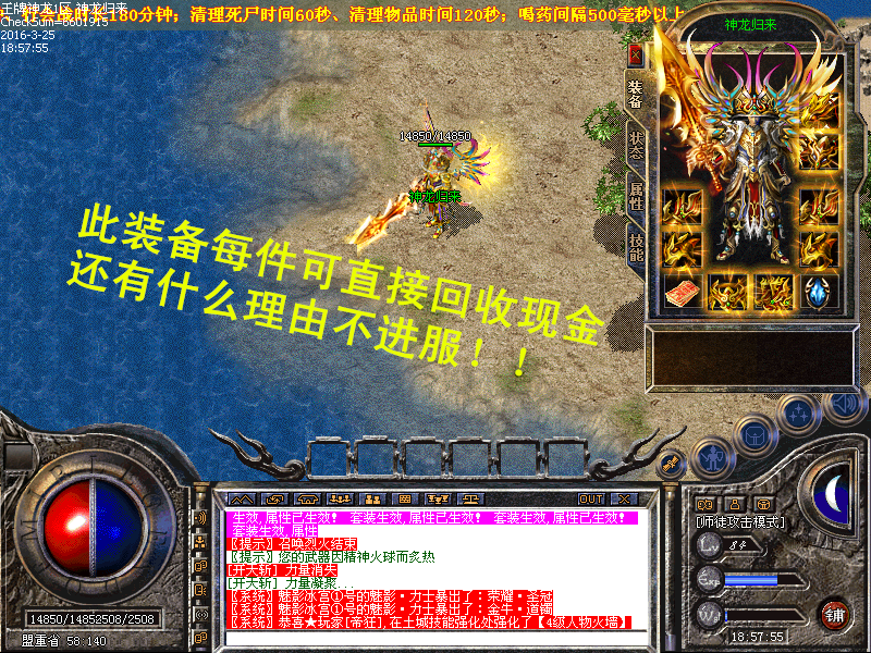 【游戏介绍】:独家1.80神龙合击升级版本,游戏乐趣更多,适合散人发展